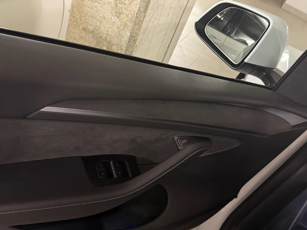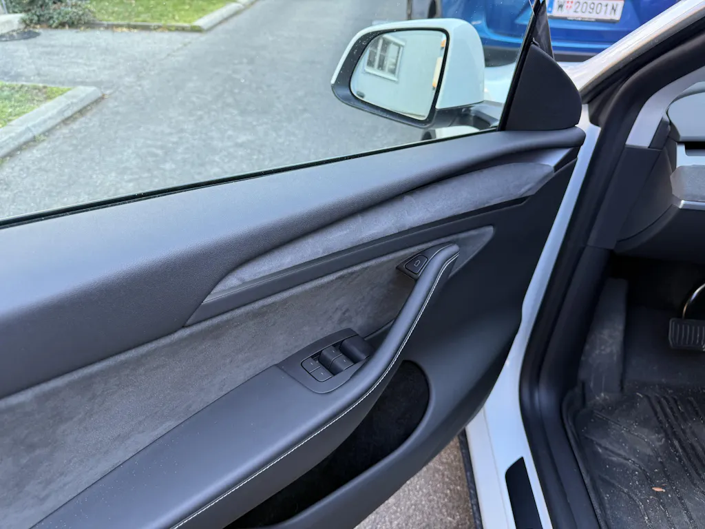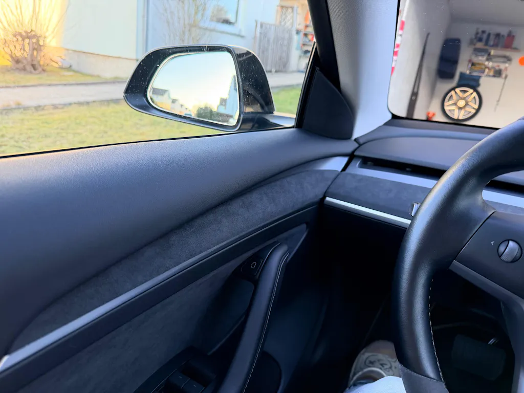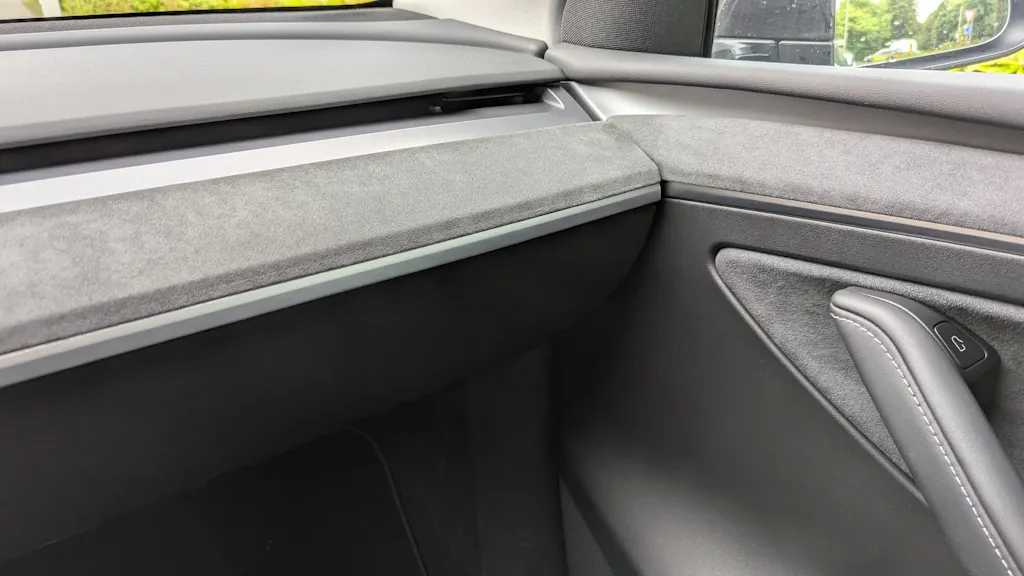 The color matches the Alcantara in the Tesla doors perfectly and blends in perfectly with the style of the interior.