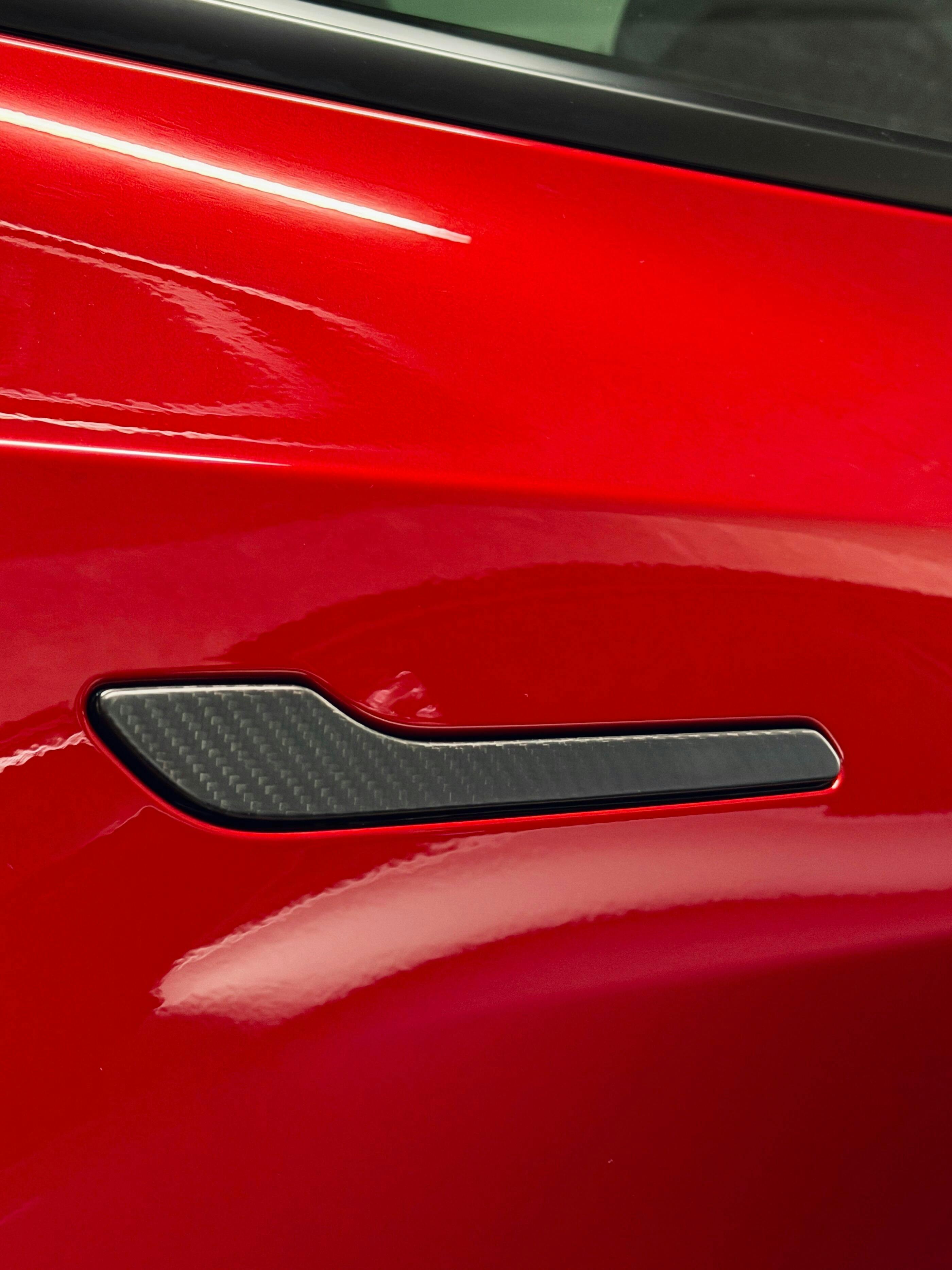 Les poignées de porte en carbone Tesla Model 3/Y rehaussent discrètement mais efficacement le design de votre véhicule. Les quatre caches parfaitement ajustés s'intègrent parfaitement aux lignes du véhicule et apportent une finition sportive et élégante.