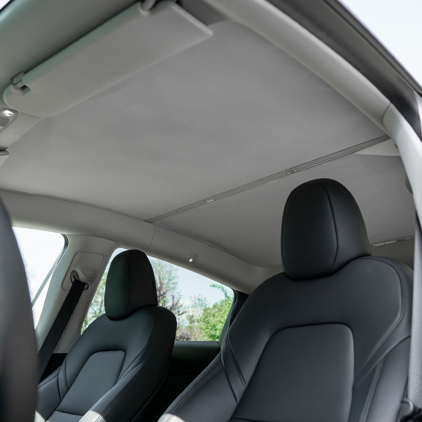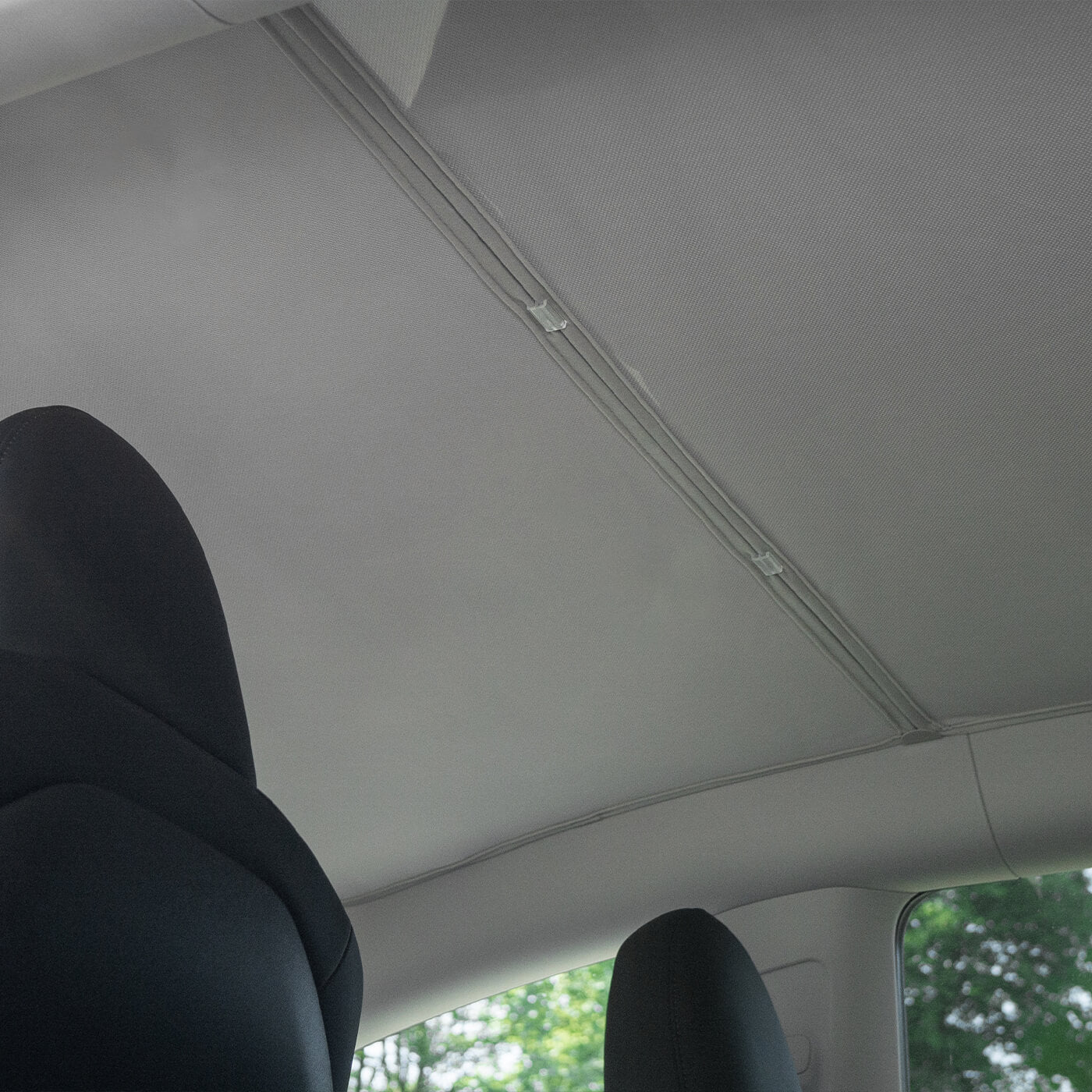 Due to the essentially uninhibited entry of light rays, the panorama sunroof can be the cause of your Tesla's inner space seriously heating up in those summer months.The Tesla Model Y Roof Sun Screen for the glass roof will resolve this issue and keep your Tesla cool in the warmest season of the year. The shaded material can be ordered in black or light grey. In combination with the silver reflection film, this product significantly and reliably reduces temperature inclines.