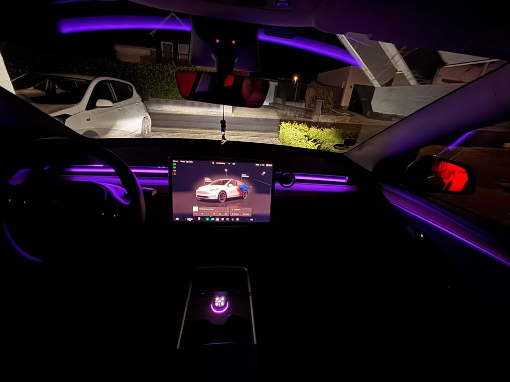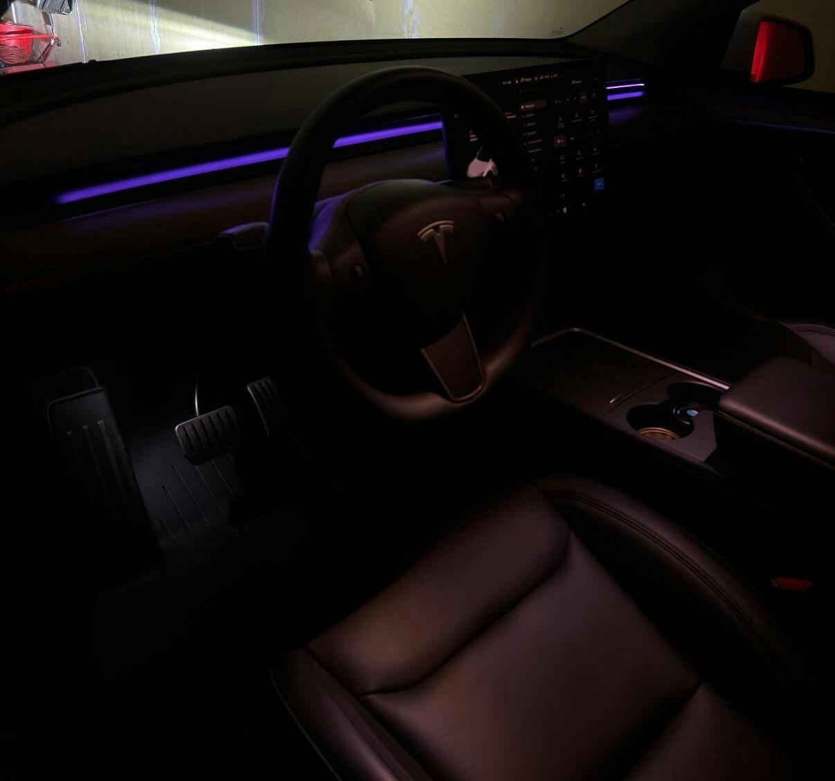 Den smarte RGB-lysstripen integreres elegant i dashbordet og gir stilig Tesla Model 3/Y-ambientebelysning og ekte funksjonalitet.