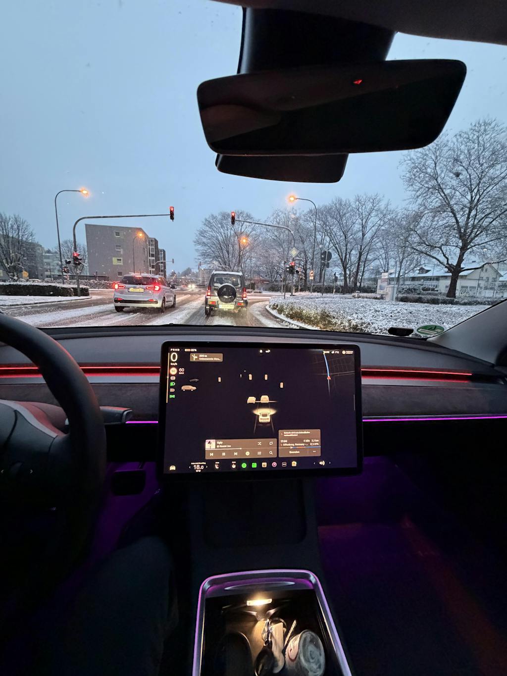 Du kjører gjennom natten i din Tesla Model 3 eller Y, og interiøret forblir nøkternt og funksjonelt - til tross for det moderne designet. Viktig informasjon som blindsonen eller advarsler vises, men oppfattes ikke intuitivt i synsfeltet.