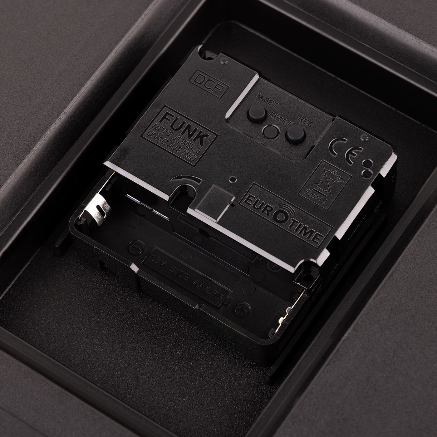 Een horloge moet visueel aantrekkelijk zijn en betrouwbaar de tijd weergeven. Daarom hebben we gekozen voor de hoogste kwaliteit die de wereld van de uurwerken te bieden heeft: het radiogestuurde uurwerk.