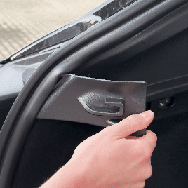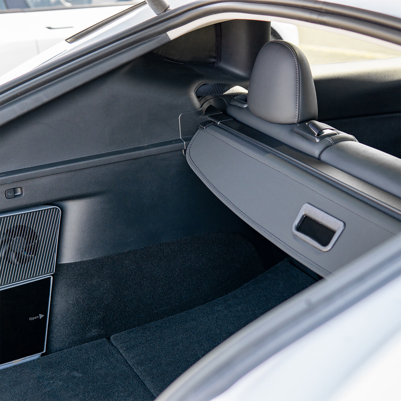 De Tesla Model Y bagageruimtehoes heeft een strakke, waterafstotende stof die zelfs onder lichte belasting niet doorhangt. Voor maximaal gemak kan de Tesla Y pakketplank in een handomdraai verwijderd en opgeborgen worden.