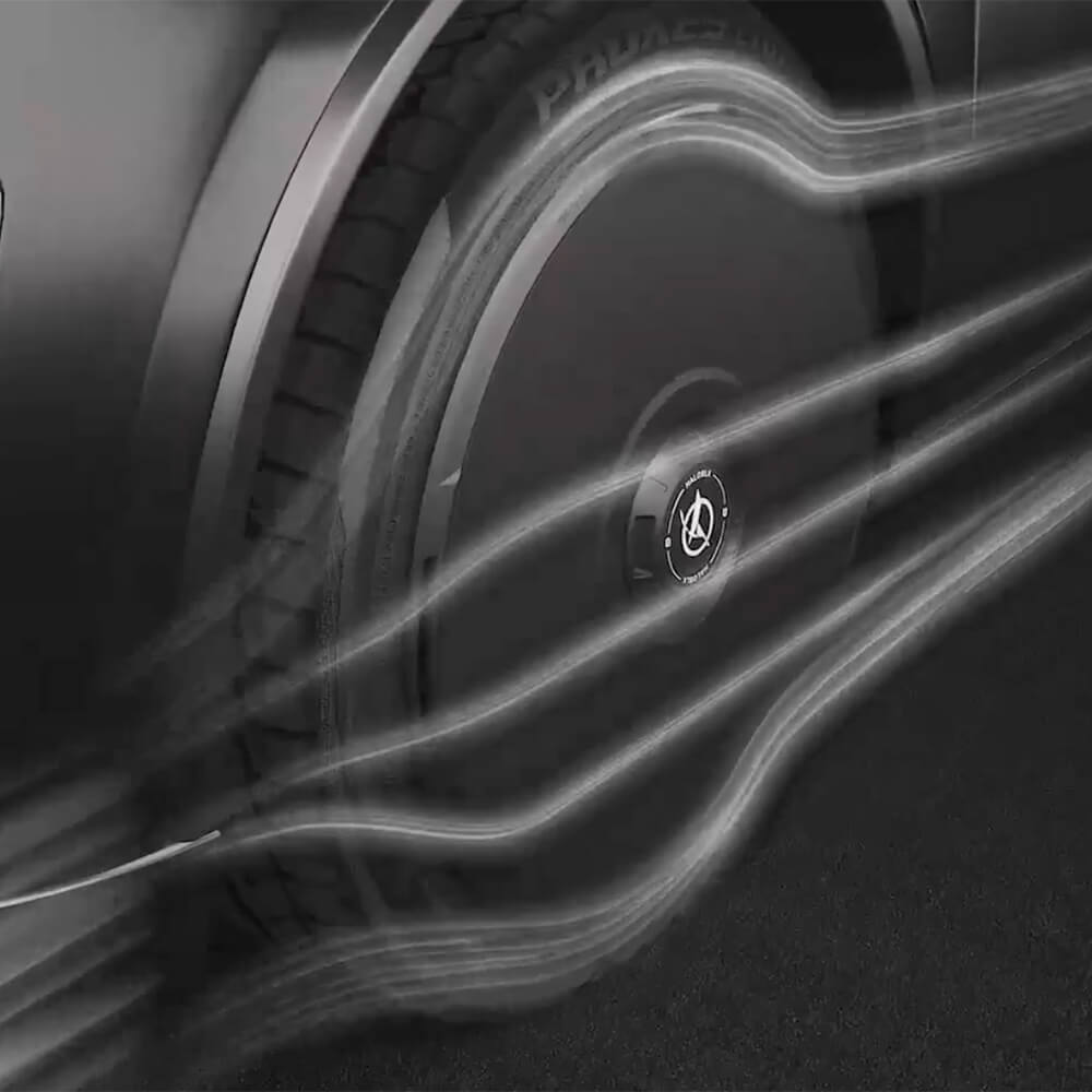 Die zusätzliche Reichweite entsteht durch die optimierte Aerodynamik der HALODISC 2. Das geschlossene, flächenbündige Design reduziert den Luftwiderstand rund um die Räder und verhindert Verwirbelungen, die bei offenen Felgen entstehen. So gleitet der Fahrtwind gleichmäßiger über Fahrzeug und Unterboden, wodurch der Luftwiderstandsbeiwert (Cd) sinkt – das spart Energie bei jeder Geschwindigkeit.